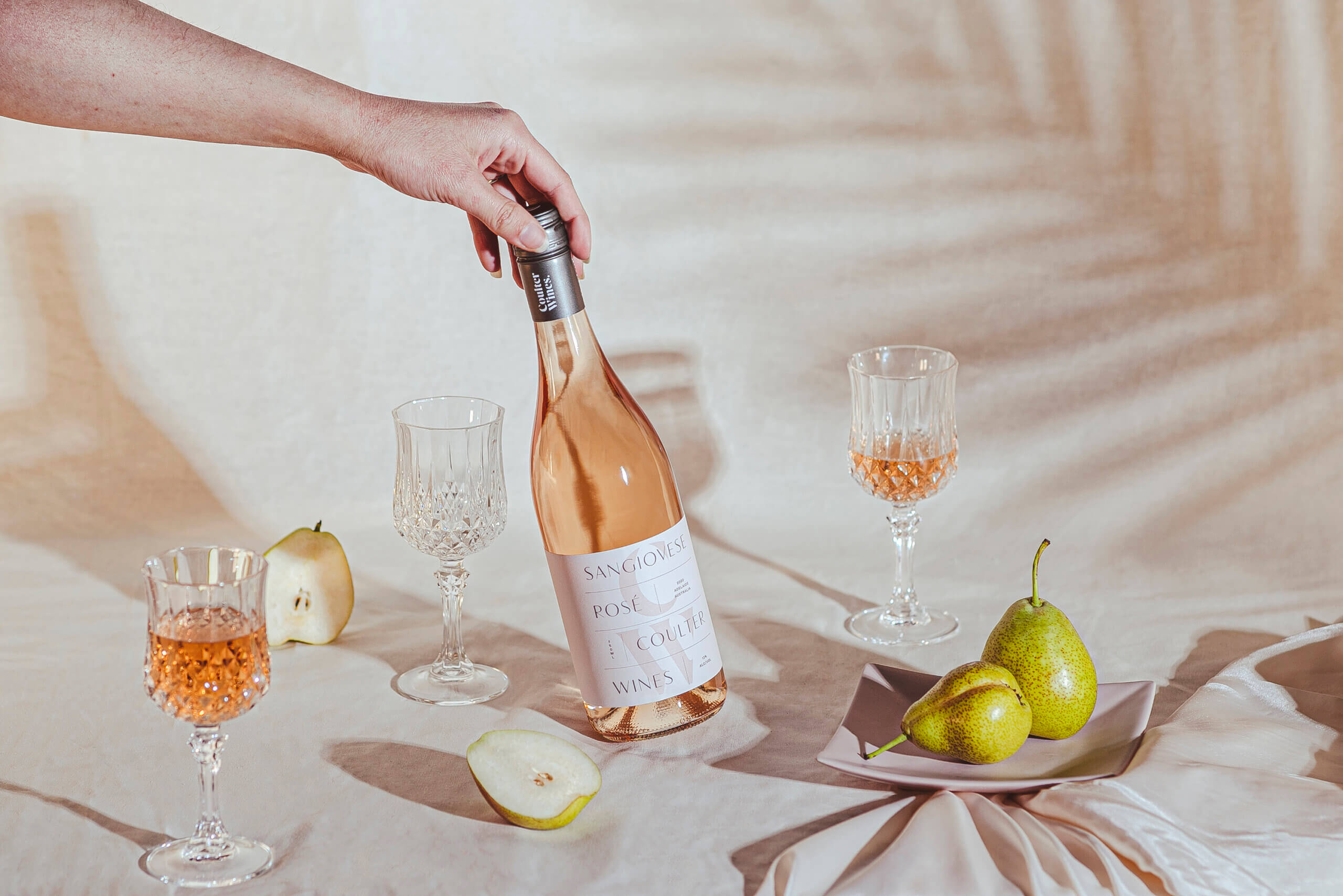 We took cues from a modern European poolside summer for this Sangiovese Rosé wine label designed for Coulter Wines.